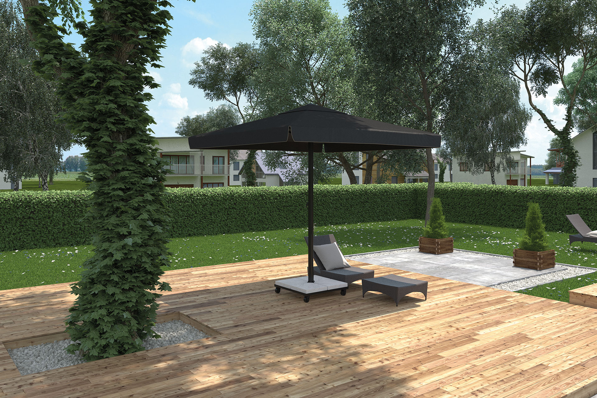 When you browse through so many technological shading systems, we seem to hear you say where that umbrella system is as we know it, here it is. Umbrellas, which can also be used manually with vertical or inclined profile options in square and round forms, are ideal for covering your large outdoor living area.