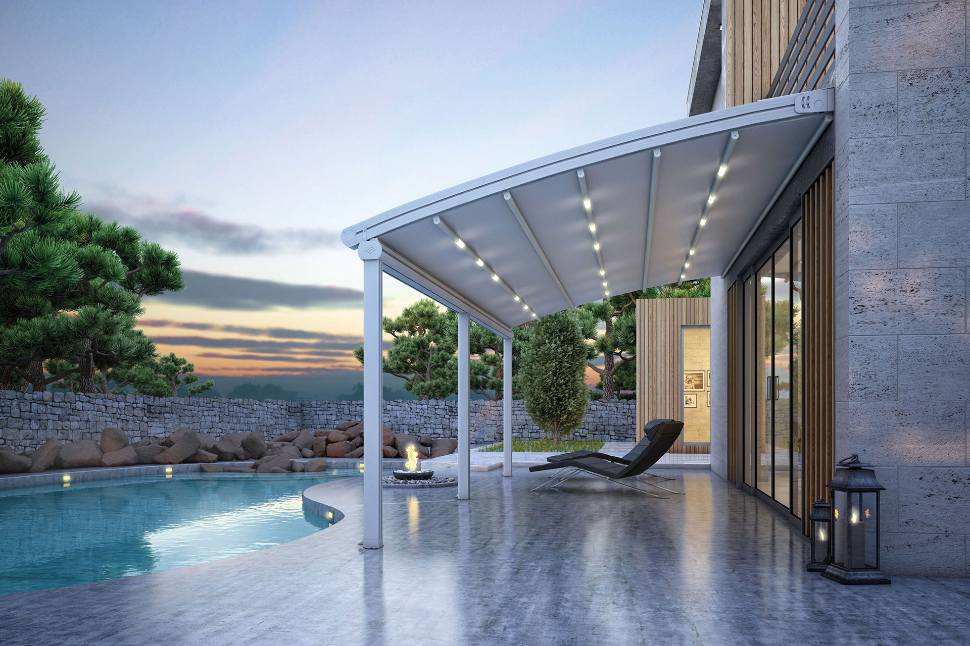 Thanks to its specially developed bulbs, it gives a softer light that does not illuminate the applied environment without losing any of its heating performance. Bioclimatic Pergolas, Pergolas, Tailor-Made and Awning, Blind & Parasol systems are easily applied, creating a dim environment resembling candlelight.