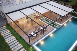 We produce solutions for you to safely carry your outdoor living spaces to the future with the Rising pergola tent systems. One solution that we produce from them is Subulate Tectona. With this system, you can open and close an area of 135 square meters. While Subulate Tectona can expand 10 meters without the need for a support profile, it can work in harmony with optional glass system and similar closing options. You feel safe and strong inside your home, don’t you? Would you like experience this feeling in your outer living space as well? Who would not want to safely extend a family garden breakfast until dinner in the warm spring months? With the power and magnificence of Subulate Tectona, it is possible to do all this easily.